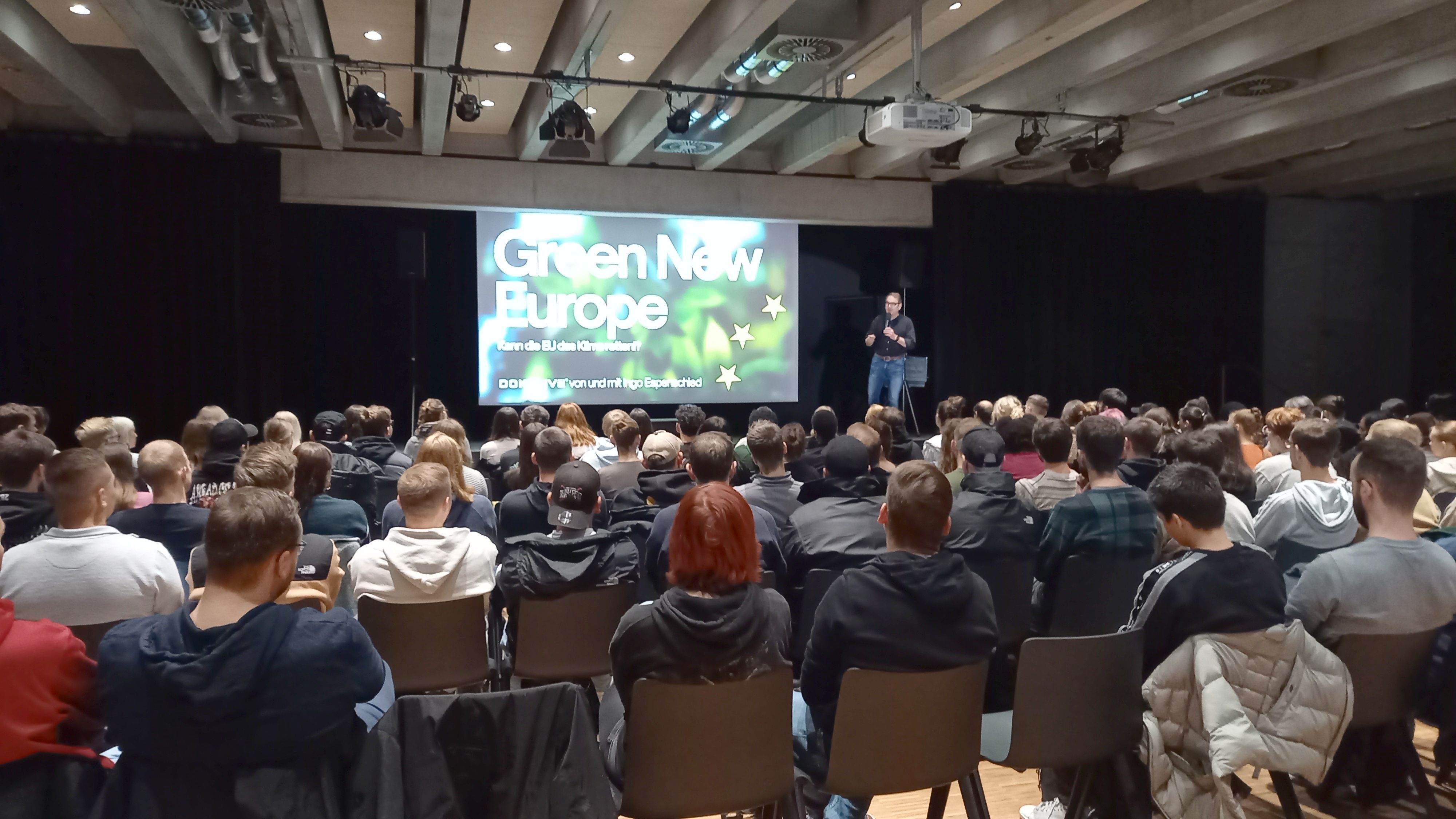 In der Aula der MARTHA-FUCHS-SCHULE verfolgten insgesamt rund 250 Schülerinnen und Schüler einen der Vorträge, teils beide Vorträge Espenschieds. In den sich jeweils anschließenden Diskussionen konnten die Teilnehmerinnen und Teilnehmer noch ihre Fragen und Meinungen mit dem Referenten besprechen.