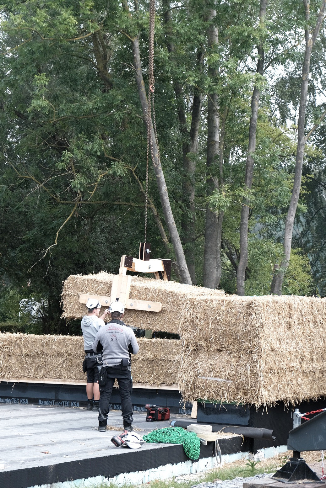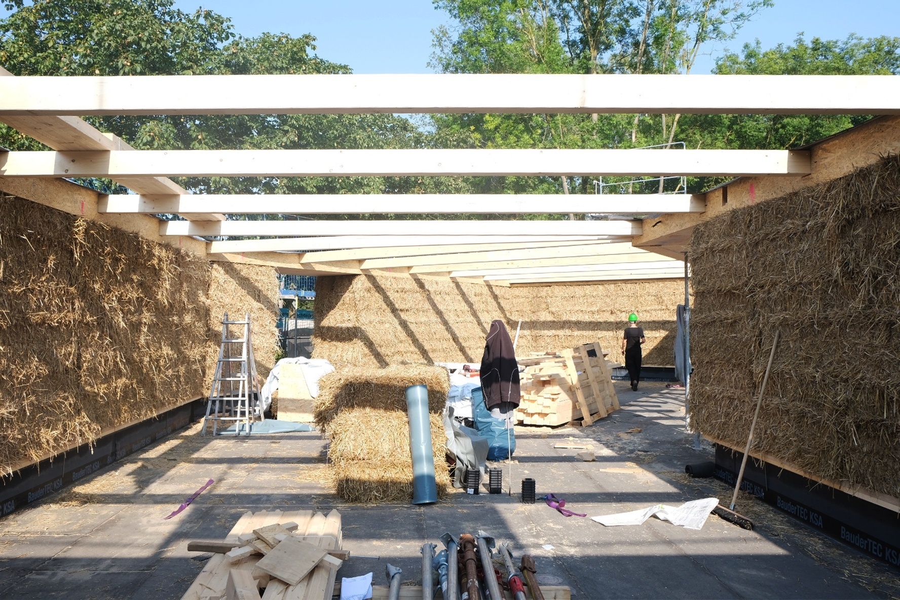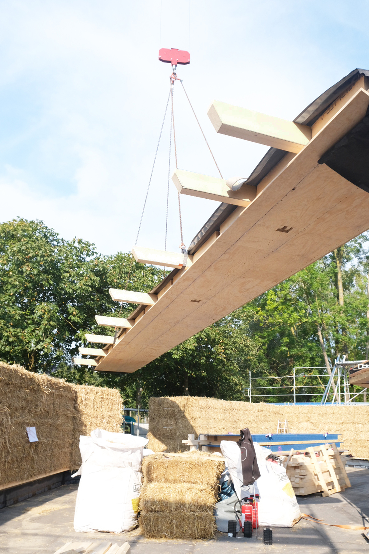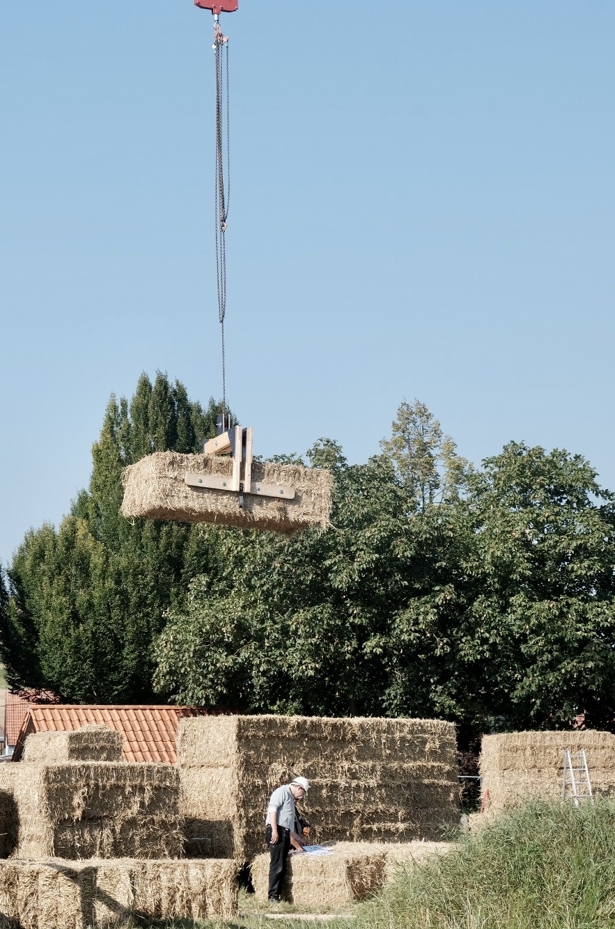 Im südniedersächsischen Flecken Adelebsen (Landkreis Göttingen) entsteht im Ortsteil Erbsen etwas Außergewöhnliches: Mitten im Ort wird eine barrierefreie Begegnungsstätte inklusive eines Jugendraumes gebaut. Der Neubau verbessert zum einen die Daseinsvorsorge und die Lebensqualität der Menschen vor Ort. Zum anderen wird durch das besonders ökologische Bauprojekt ein wichtiger Beitrag zur Nachhaltigkeit erzielt: Das Tragsystem des Gebäudes wird aus lasttragenden, mit Kalk- bzw. Lehm verputzten Strohballen errichtet, die Dachkonstruktion besteht aus Holzelementen mit einer Strohdämmung.