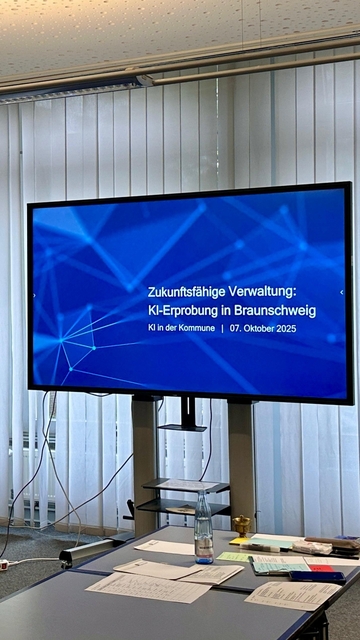 Ziel der Veranstaltung war es, praxisnahe Impulse zu geben und gemeinsam Projektideen zu entwickeln, die den digitalen Wandel in den Kommunen aktiv gestalten. Fachliche Einblicke lieferten Herr Krause vom Kompetenzzentrum für künstliche Intelligenz des Landes Niedersachsen, Herr Engelland als Vertreter der Stadt Braunschweig sowie Frau Prof. Dr. Kauffeld von der Technische Universität Braunschweig. In ihren Vorträgen zeigten die Referent*innen auf, mit welchen Maßnahmen das Land Niederachsen die Einführung von KI unterstützt, wie KI bereits heute Verwaltungsprozesse vereinfachen kann und welche Potenziale für zukünftige Anwendungen bestehen – etwa bei der automatisierten Datenverarbeitung, der Bürgerkommunikation oder der Entscheidungsunterstützung.
