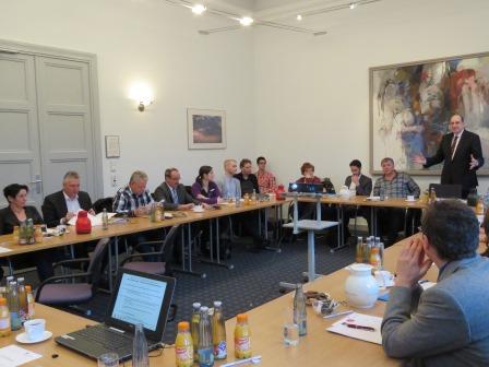 Zu diesem Thema lud der Landesbeauftragte des ArL Braunschweig, Matthias Wunderling-Weilbier, am 17.12.2015 alle kommunalen Vertreter der Landkreise und kreisfreien Städte ein, um ihnen im Rahmen eines Fachworkshops die verschiedenen staatlichen Förderszenarien zum kommunalen Breitbandausbau näher zu bringen. Ziel ist es, eine flächendeckende Breitbandversorgung mit einer Geschwindigkeit von mindestens 50 Mbits pro Sekunde zu erreichen. Hierfür stehen verschiedene Geldmittel von EU, Bund und insbesondere dem Land Niedersachsen zur Verfügung, so Peer Beyersdorff vom Breitband Kompetenz Zentrum Niedersachsen. Um dies zu gewährleisten, können unter anderem die Kommunen aktiv werden und landkreiseigene Breitbandnetze initiieren, die mittels Glasfaserkabel verlegt werden. Klaus Ohlig vom Nieders. Ministerium für Wirtschaft, Arbeit und Verkehr erläuterte sehr differenziert die Zusammenhänge der staatlichen Förderung sogenannter Betreibermodelle oder Wirtschaftlichkeitslücken. Der Breitbandausbau ist für jede Kommune ein aufwendiges und komplexes Projekt. Die Breitbandstrategie des Landes Niedersachsen zielt insbesondere darauf ab, dass auch ländliche Regionen mit der schnellstmöglichen Informationstechnologie versorgt werden, wie wir es bereits aus den größeren Städten kennen. Darüber hinaus bietet der Ausbau der Breitbandnetze Anreize für Unternehmen und Menschen, sich in ländlichen Regionen wohlzufühlen. Für den geplanten Breitbandausbau steht neben der Förderung aus Bundes- und Landeszuschüssen auch ein großes Darlehensvolumen seitens der Niedersächsischen Investitions- und Förderbank (NBank) für Kommunen bereit. Darüber hinaus unterstützt und berät das ArL Braunschweig die Antragsteller in allen wichtigen Fragen zum Thema Breitbandausbau in der Region.