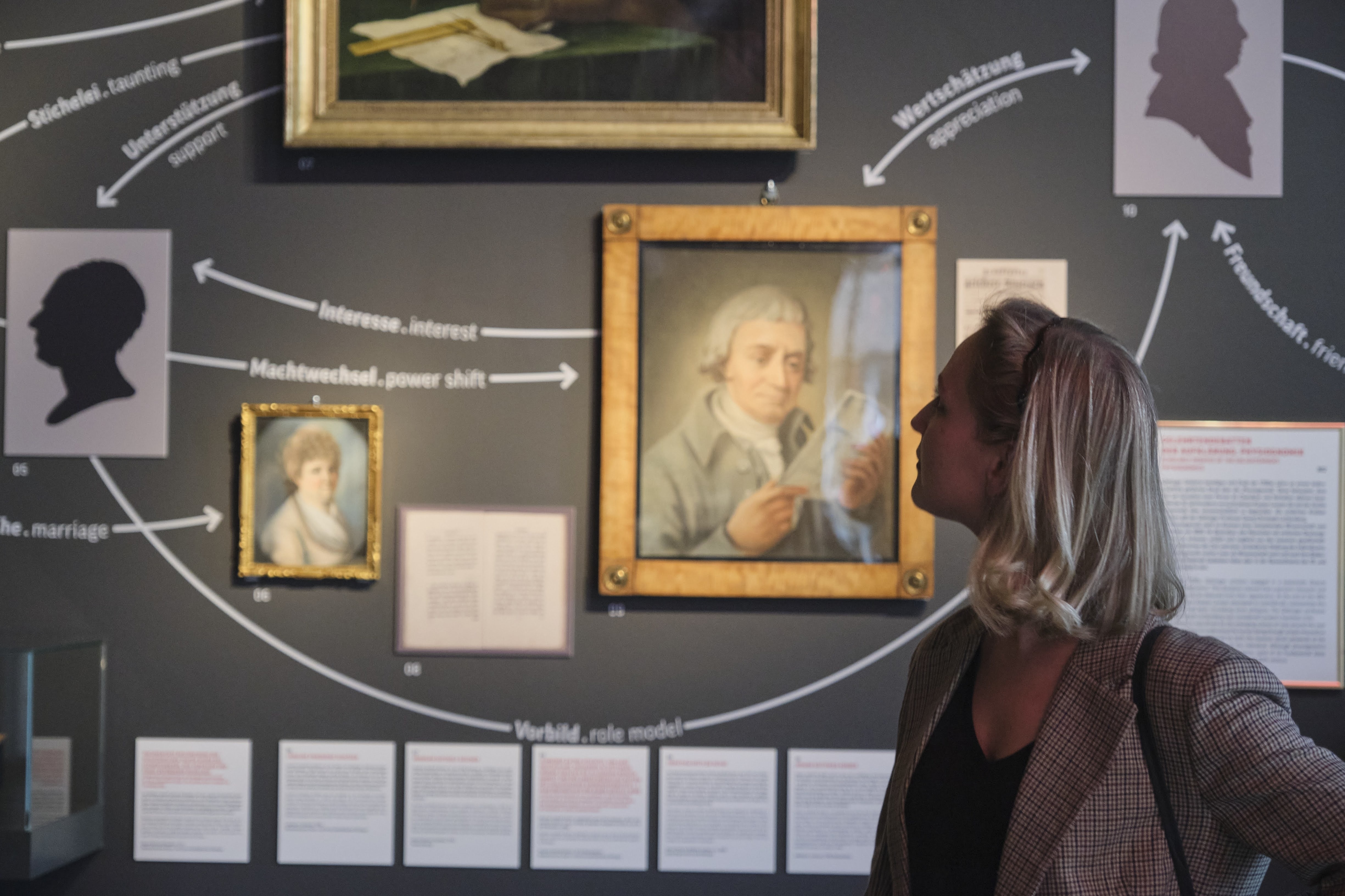Auf einer Fläche von rund 1.200 Quadratmetern wartet die Basisausstellung mit einer ungewöhnlichen Szenografie auf: vom Bücherturm über den begehbaren Schreibtisch bis hin zum sprichwörtlichen Holzweg. Wer möchte, kann über Fachgrenzen hinweg auf dem Rundgang digital mit dem Handy Objekte sammeln und sich verschiedenen Perspektiven auf ausgewählte Exponate anhören.