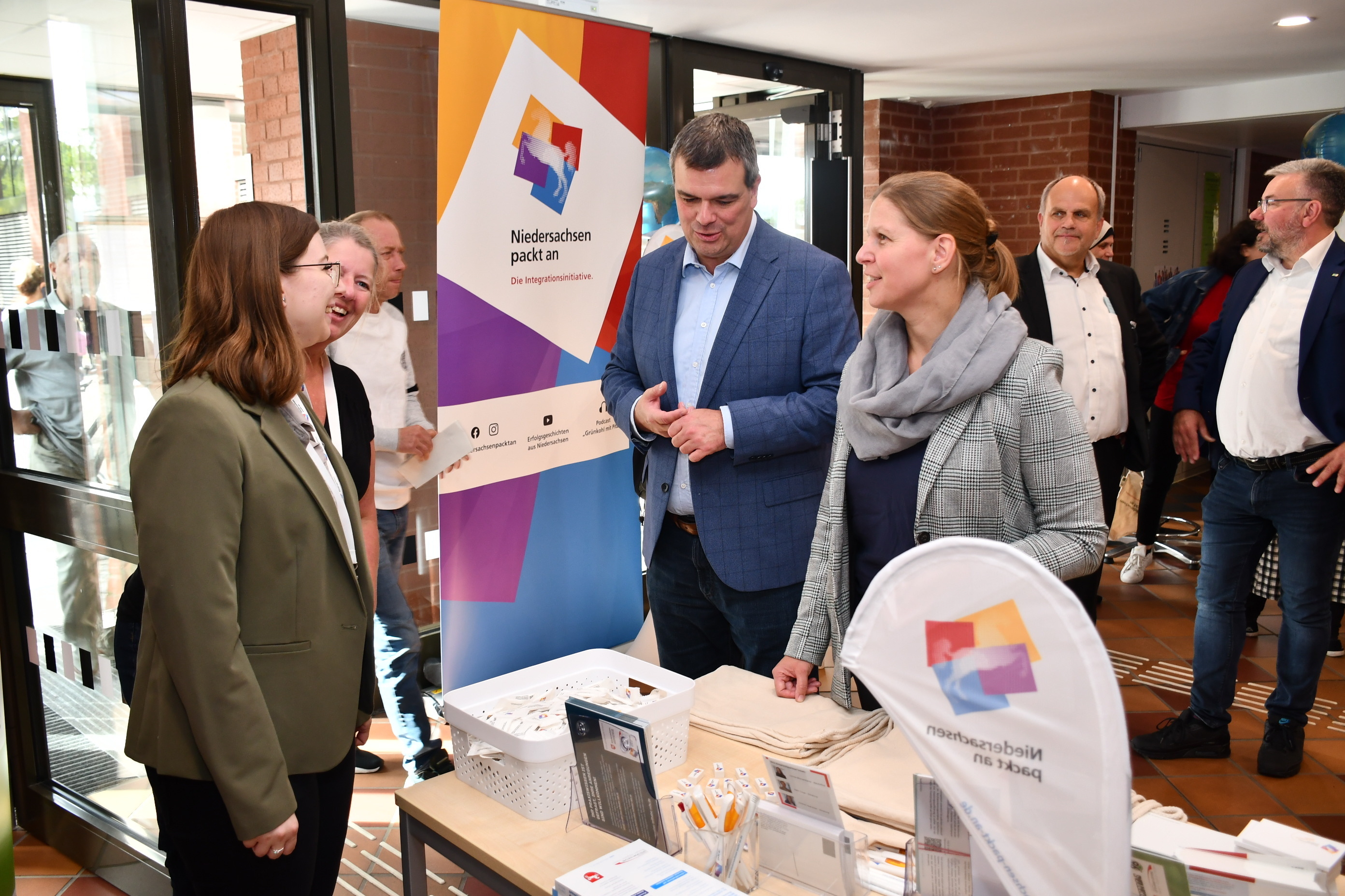 Regionalministerin Wiebke Osigus dankte den Organisatoren und beteiligten Unternehmen für ihr Engagement zur Integration geflüchteter und zugewanderter Menschen. „Nur wenn Politik, Verwaltung, Wirtschaft und Bürgerschaft zusammenkommen und gemeinsam die Ärmel hochkrempeln, können große Herausforderungen bewältigt werden.“ Dafür stehe das Bündnis „Niedersachsen packt an“, das in diesem Jahr bereits zahlreiche regionale Integrationsmessen mit bis zu 1.000 Teilnehmenden pro Veranstaltung niedersachsenweit durchgeführt habe. „Eine Arbeitsstelle ist ein wichtiger Baustein, um vor Ort Fuß zu fassen und das tägliche Leben aus eigener Kraft zu gestalten. Der heutige Tag ist damit eine Chance für uns alle – für Arbeitssuchende, für Unternehmen, für die Region“, so Osigus weiter.