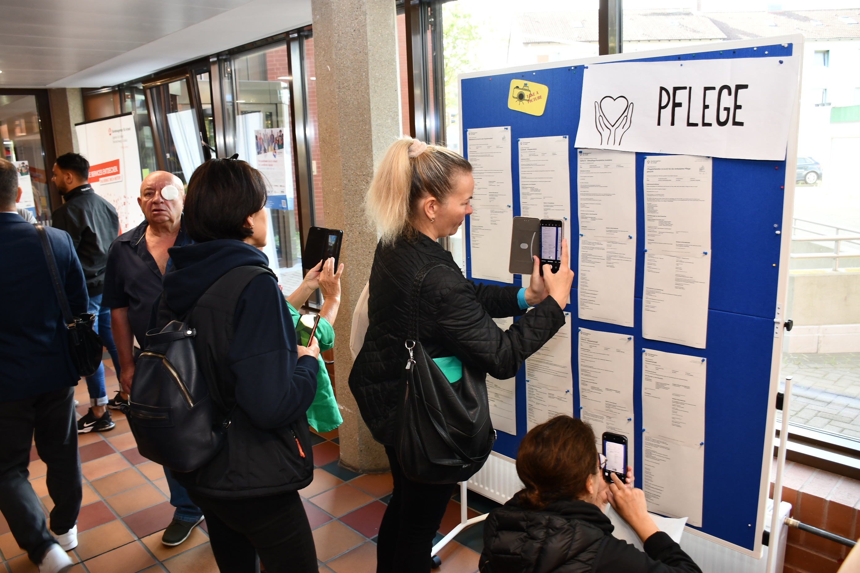 Die Organisatoren der Jobbörse in Goslar waren auf die internationalen Gäste eingestellt: Schon die Information zur Veranstaltung war auf Deutsch, Englisch, Ukrainisch, Russisch und Arabisch erhältlich. An den Messeständen waren noch viele andere Sprachen zu hören. Dieser Herausforderung wurde mit Dolmetscherinnen und Dolmetschern sowie Übersetzungs-Apps begegnet. Zudem hatten einige Firmen auch mehrsprachiges Personal am Messestand, so dass auch individuelle Fragen zu Einstellungsvoraussetzungen und Qualifikationen beantwortet werden konnten.