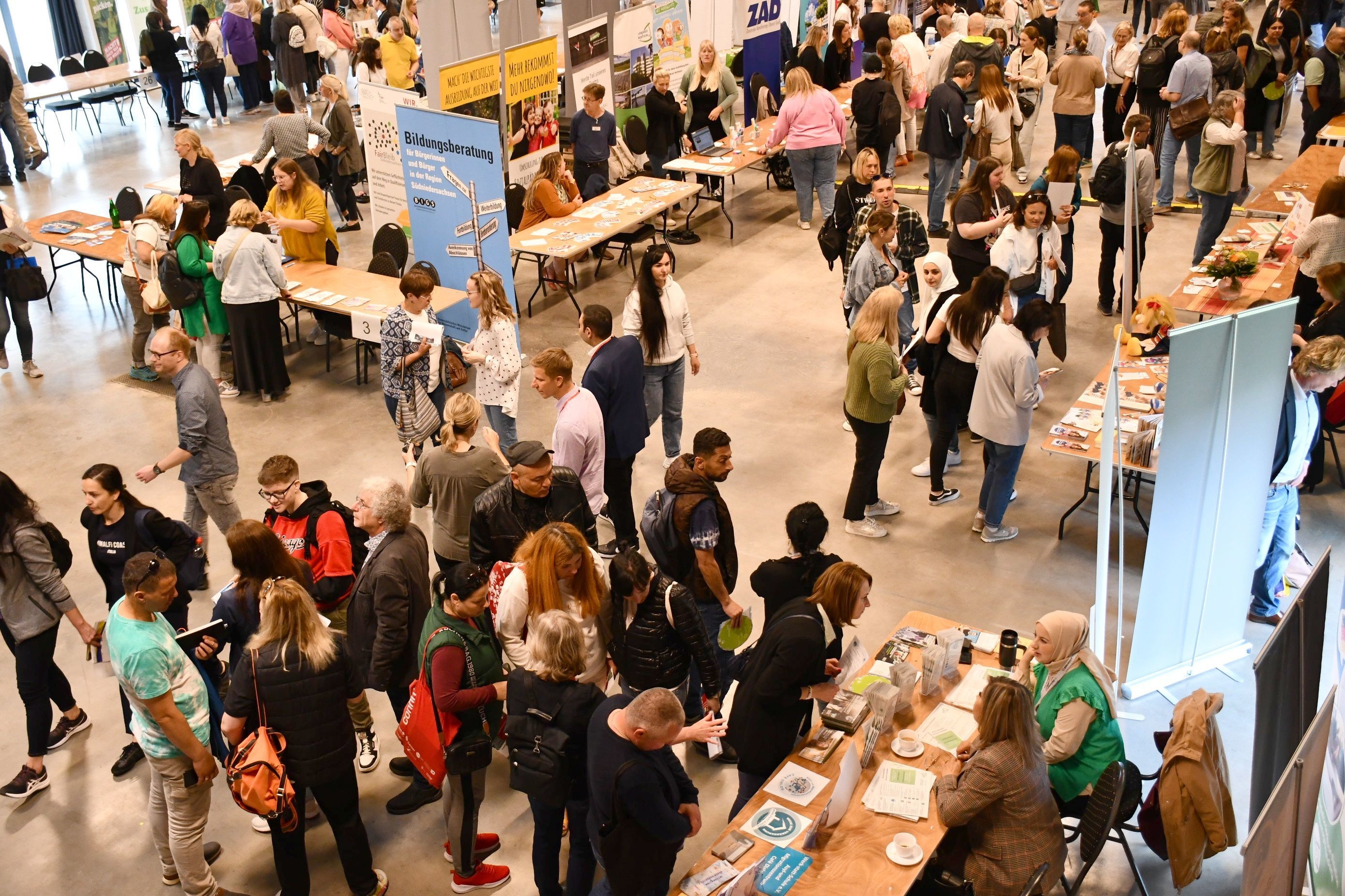 Einbeck. Ein Job ist ein wichtiger Schritt zur Integration von Geflüchteten. Mehr als 300 Menschen aus der Ukraine und anderen Staaten informierten sich am 17. Juni 2024 in der Multifunktionshalle Einbeck über offene Stellen in der Region. Über 30 Unternehmen und Institutionen suchten Arbeitskräfte in den unterschiedlichsten Branchen. Das Bündnis „Niedersachsen packt an“ hatte die Veranstaltung ermöglicht: Gemeinsam mit dem Jobcenter Landkreis Northeim und der Agentur für Arbeit Göttingen hatte das Amt für regionale Landesentwicklung Braunschweig zu der Veranstaltung eingeladen, bei der sich auch der Landkreis Northeim, die Handwerkskammer Hildesheim-Südniedersachsen und die IHK Hannover engagiert hatten.