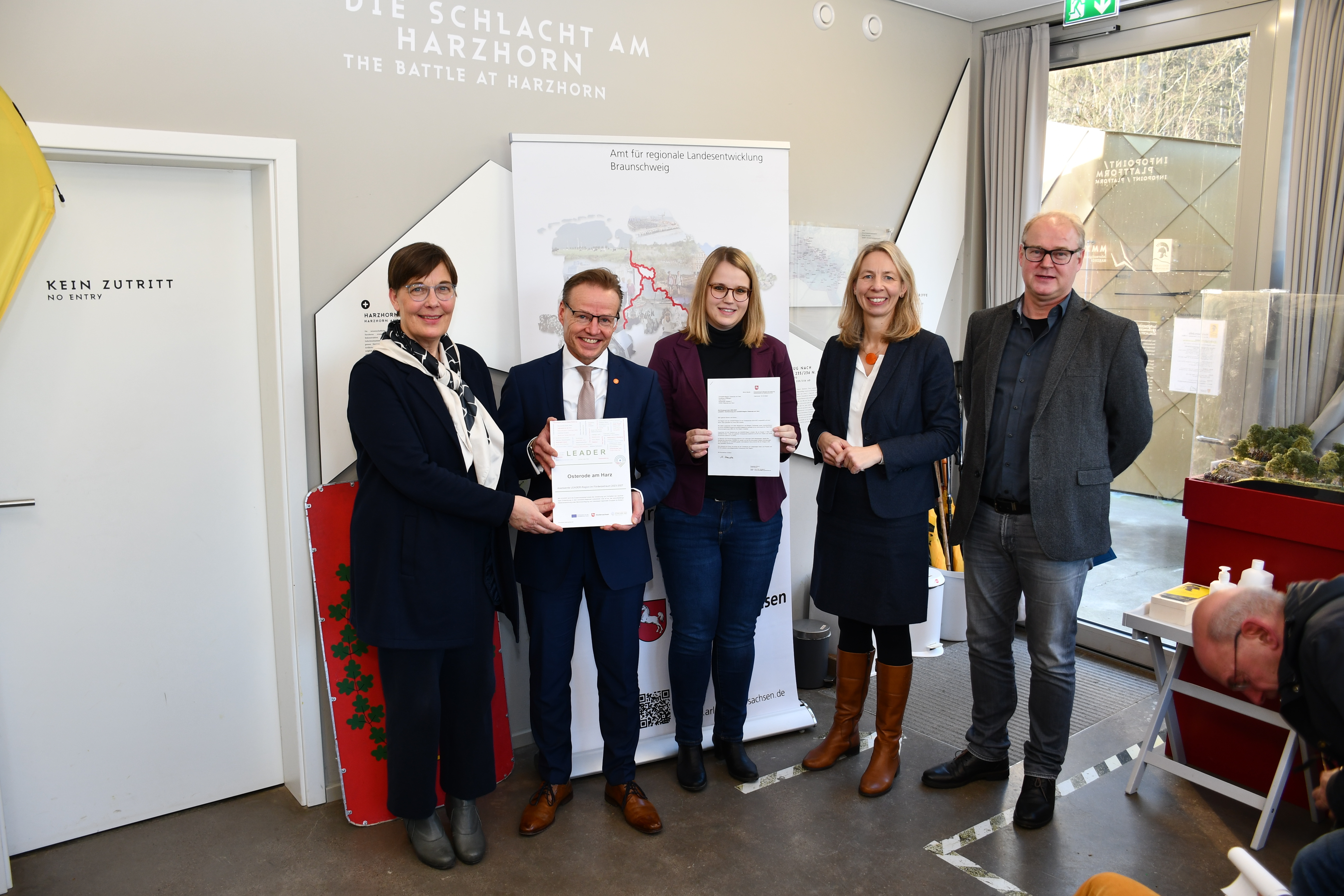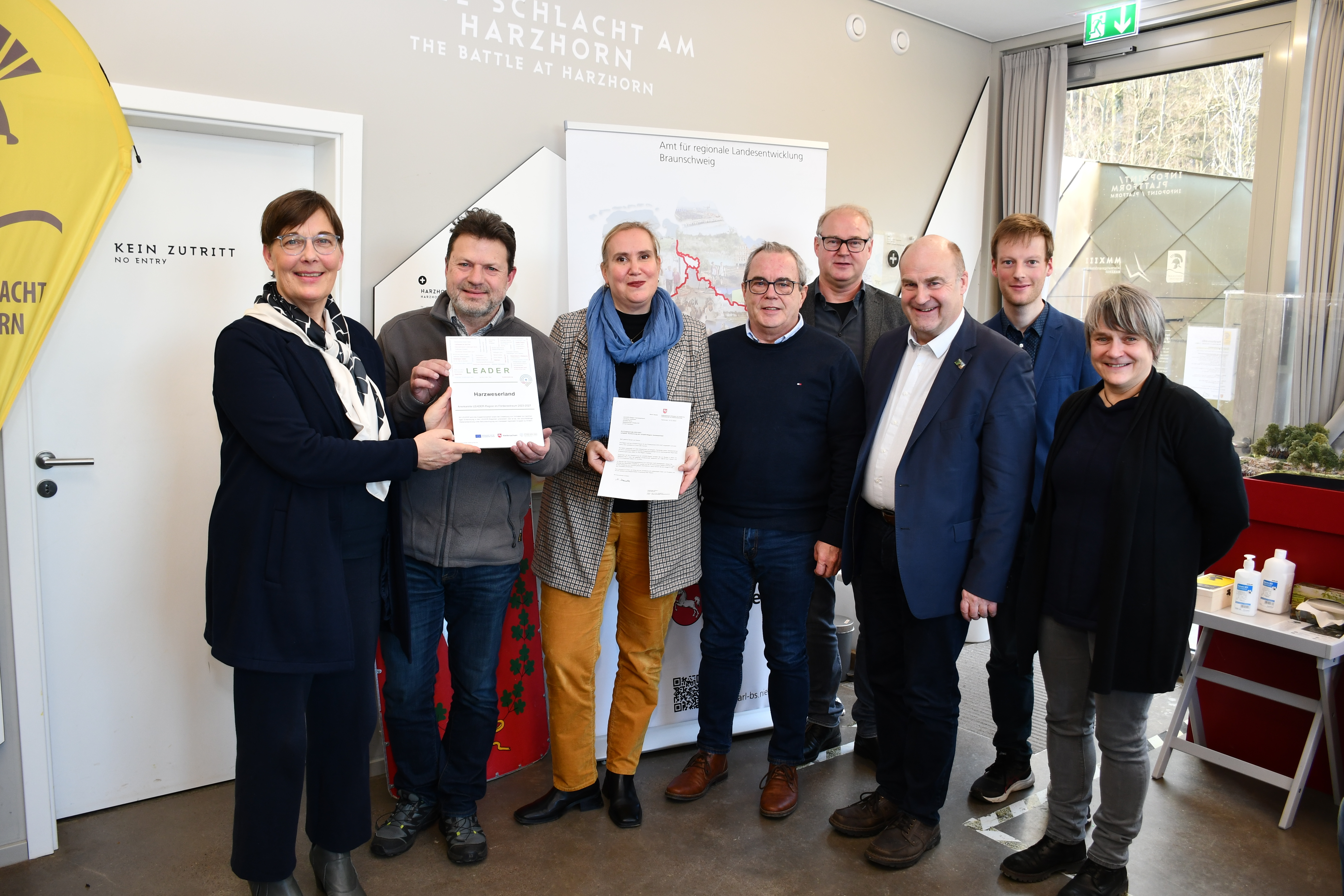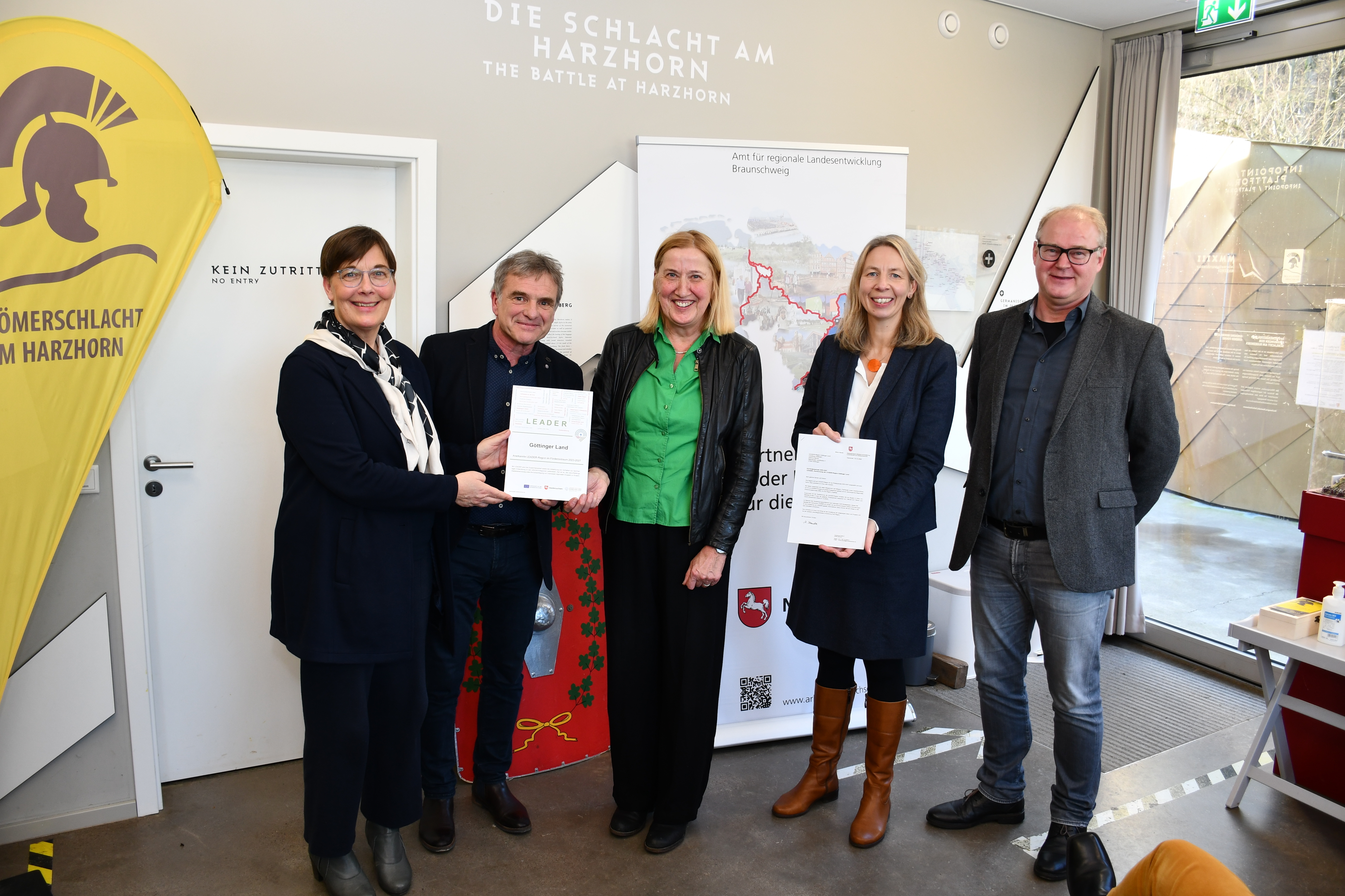 Zur Übergabe, die im Informationsgebäude „Römerschlacht am Harzhorn“ stattfand, waren alle vier Regionen – Harzweserland (LK Northeim), Göttinger Land (LK Göttingen), Westharz und Osterode am Harz vertreten.