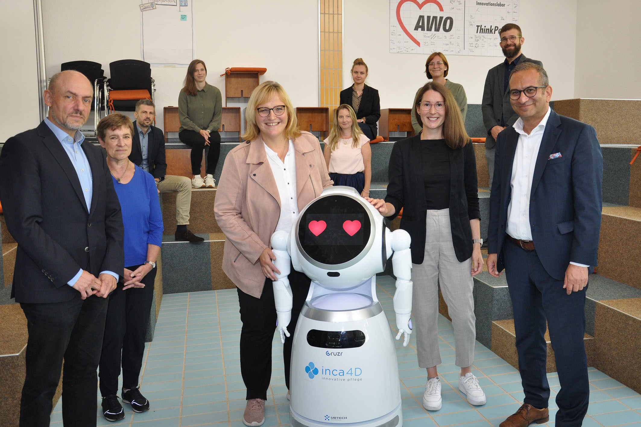 “Hallo, ich bin Cruzr!” Mit diesen Worten begann der Serviceroboter der Metropolregion GmbH die Vorstellungsrunde beim Projekttreffen am 14.09.2022 im Innovationslabor der AWO Braunschweig in Querum. Neben Dinah-Stollweck-Bauer, Landesbeauftragte für regionale Entwicklung Leine-Weser, freute sich auch Astrid Paus vom ArL Braunschweig, nach dem Projektkickoff im Januar Cruzr nun endlich auch persönlich die Hand zu schütteln. Im Fokus des Besuchs standen für die Projektpartner Fragen rund um die möglichen Reaktionen von Angehörigen auf Cruzr, seine Einsatzbereiche und erste Fortschritte.