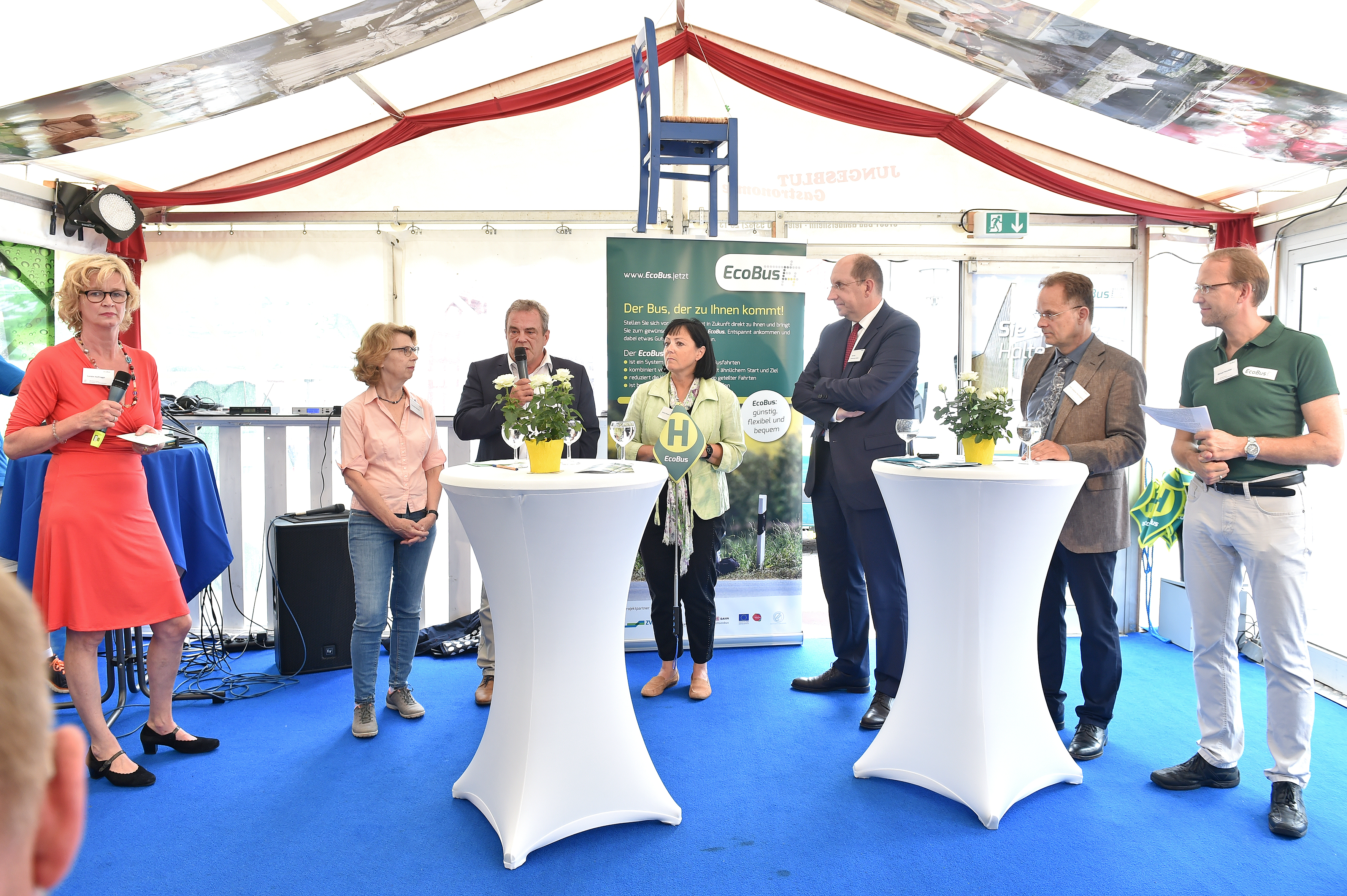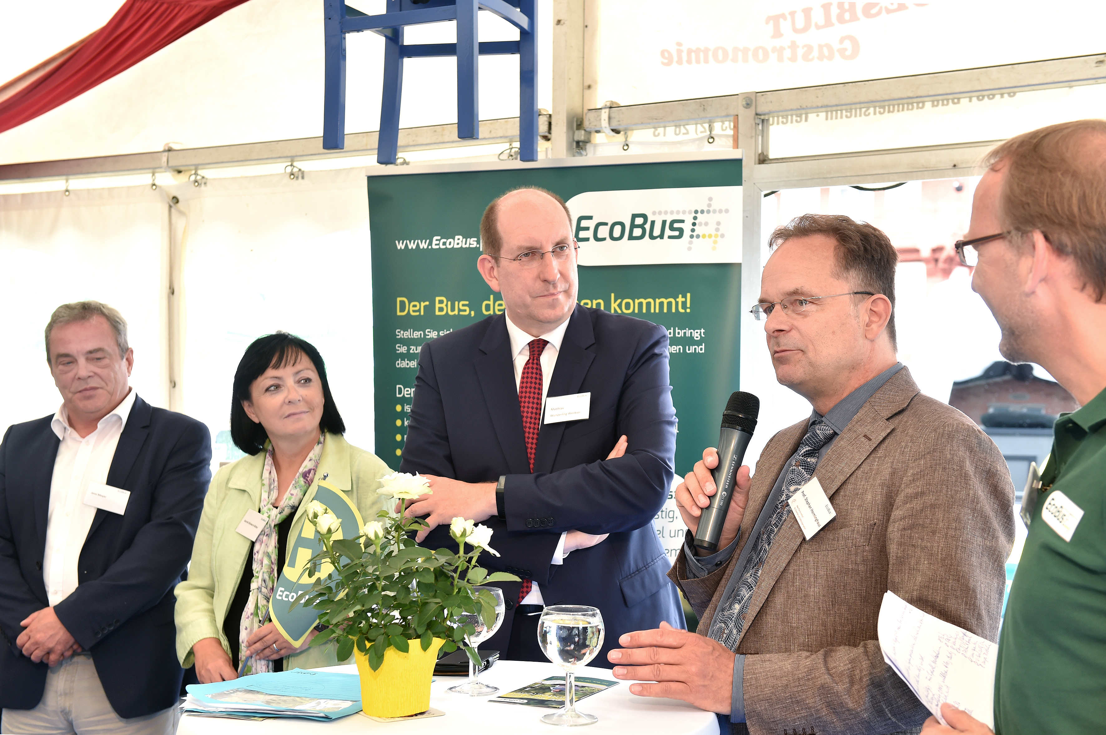 Der Startschuss ist gefallen - die ersten fünf EcoBusse fahren in der Zeit der 60. Gandersheimer Domfestspiele in und um Bad GAndersheim sowie in der Nachbargemeinde Kalefeld. " Für uns geht heute eine intensive Vorbereitungszeit in die nächste Phase", sagte der Leiter des EcoBus- Pojekts Prof. Stephan Herminghaus, Direktor am Max-Planck-Institut für Dynamik und Selbstorganisation.