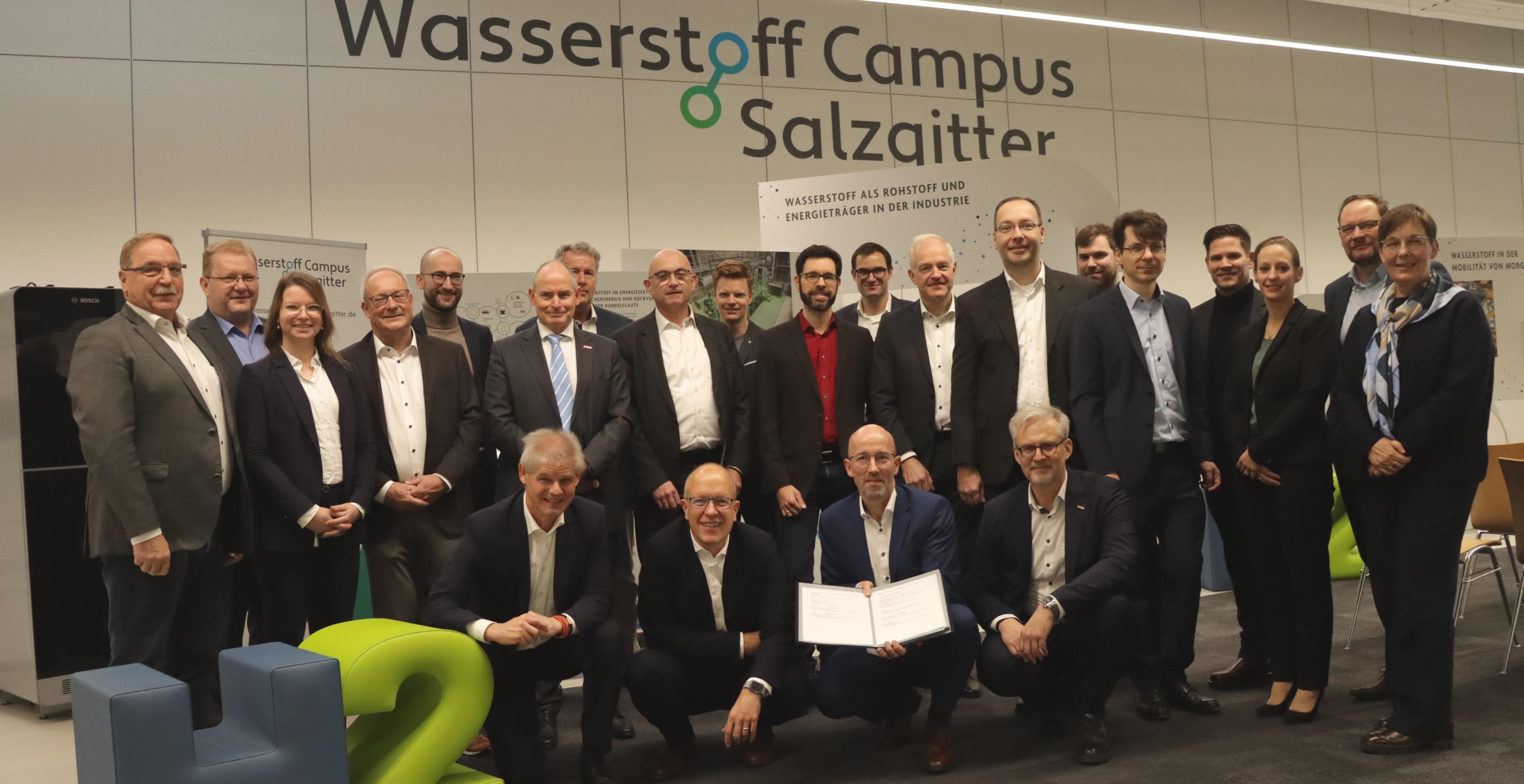VertreterInnen der Gründungsmitglieder vom „Wasserstoff Campus Salzgitter e.V.“: Amt für regionale Landesentwicklung Braunschweig, Allianz für die Region GmbH, Alstom Transport Deutschland GmbH, Fraunhofer-Institut für Schicht- und Oberflächentechnik IST, MAN Energy Solutions SE, Robert Bosch Elektronik GmbH, Salzgitter AG, Stadt Salzgitter, Technische Universität Braunschweig, WEVG Salzgitter GmbH & Co. KG