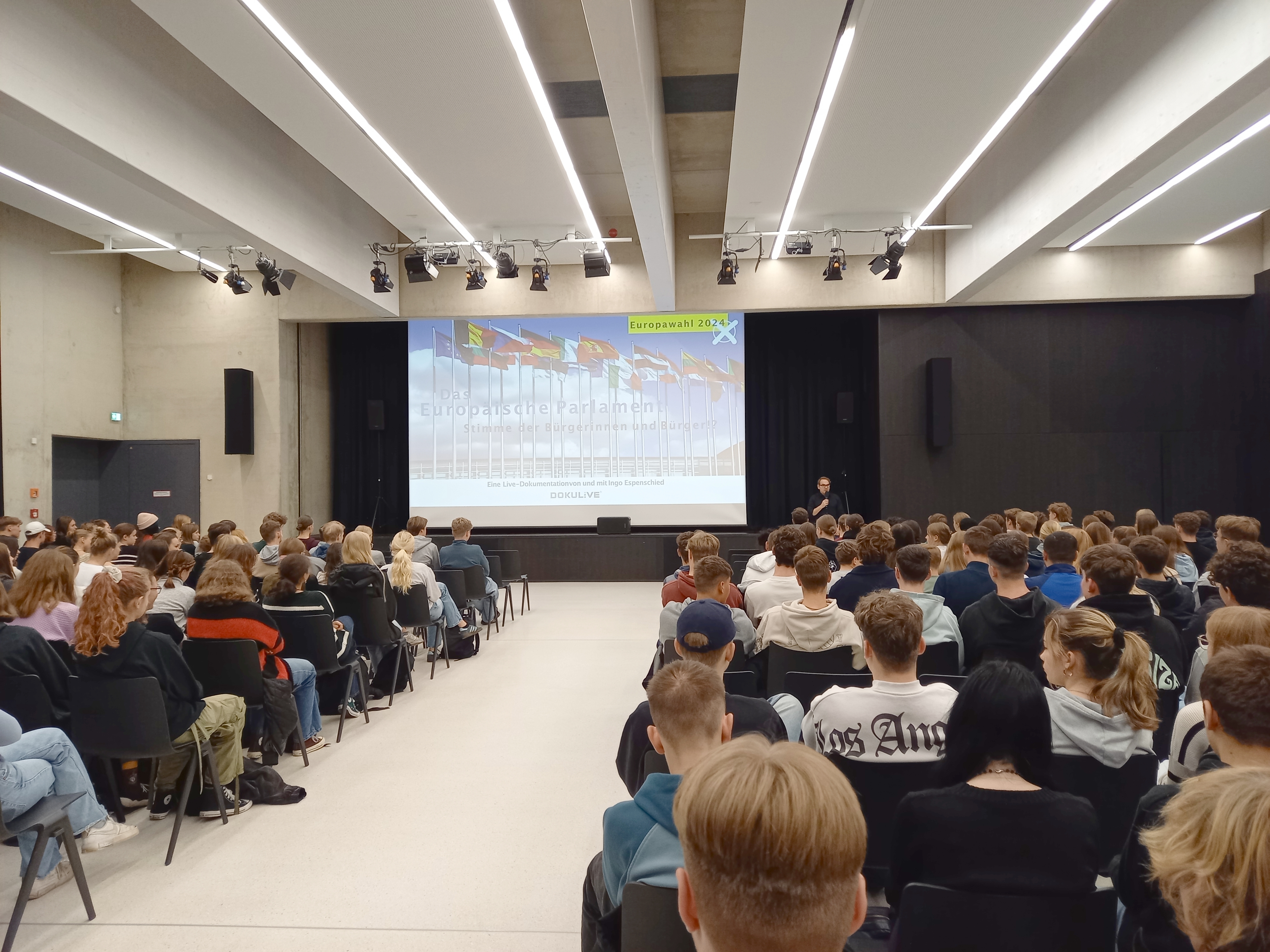 Initiiert und finanziert durch das Amt für regionale Landesentwicklung Braunschweig brachte Anfang November der Diplom-Politologe und Journalist Ingo Espenschied rund 600 Schülerinnen und Schülern des Lessinggymnasiums Braunschweig-Wenden und des Phoenix Gymnasiums Wolfsburg-Vorsfelde die Entwicklung und heutige Funktion des Europäischen Parlaments näher. Anlass war die kommende Europawahl am 09.06.2024, bei der in Deutschland erstmals bereits 16-jährige wählen dürfen.