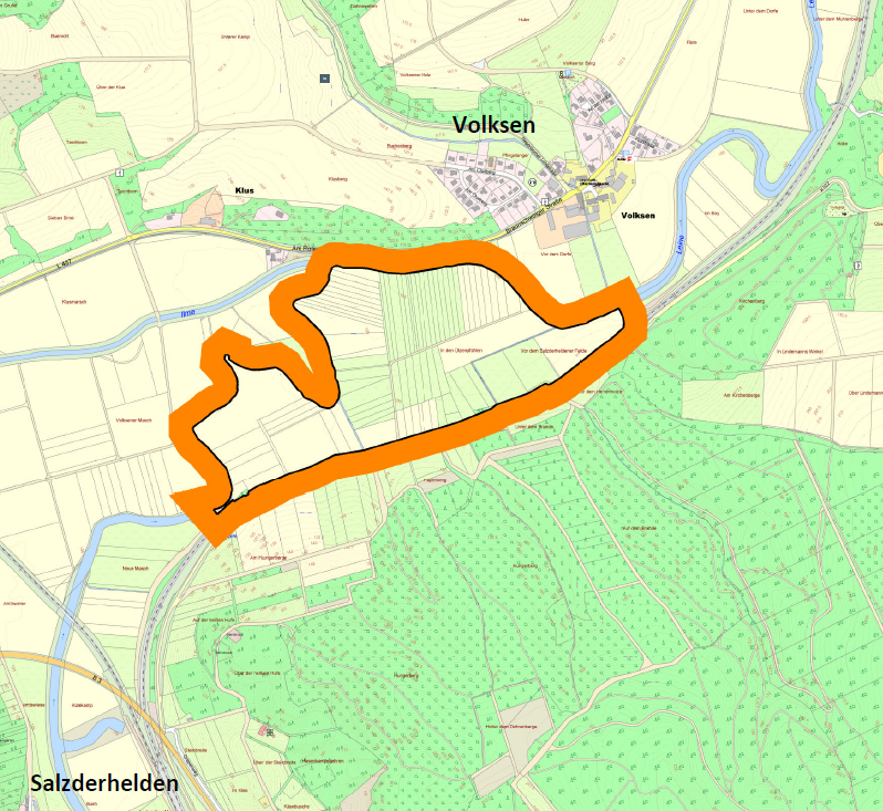 Ziel ist die Neustrukturierung der Leineschlaufe bei Volksen, die Flächen des Leineverbandes sollen an die Leine (Gewässer II. Ordnung) herangelegt werden um dort einen naturnahen Gewässerraum nach der EG WRRL entwickeln zu können.