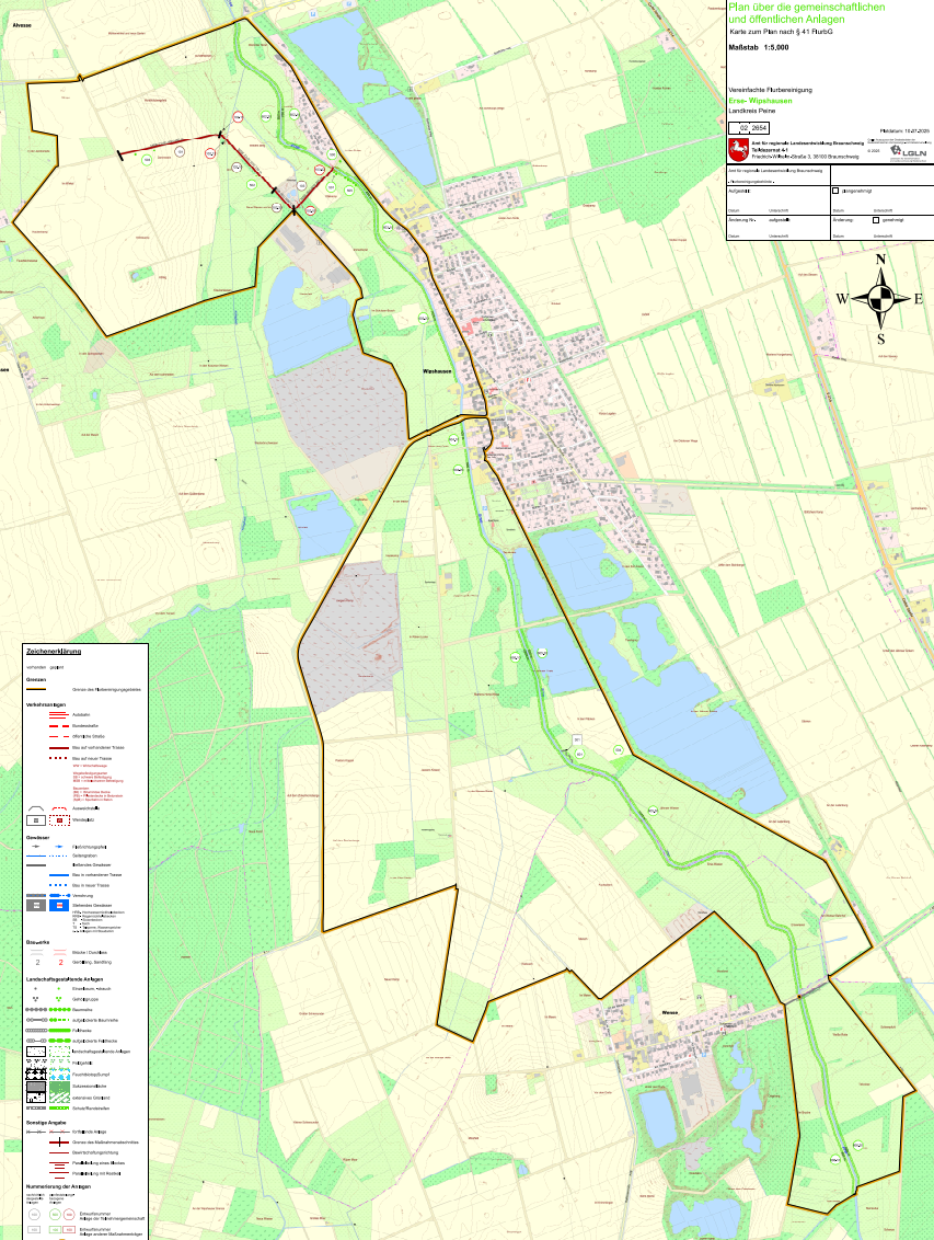 Im Flurbereinigungsverfahren Erse-Wipshausen ist der Plan über die gemeinschaftlichen und öffentlichen Anlagen (Plan nach § 41 FlurbG), der vom Amt für regionale Landesentwicklung als Flurbereinigungsbehörde im Benehmen mit dem Vorstand der Teilnehmergemeinschaft aufgestellt wurde, genehmigt worden.
