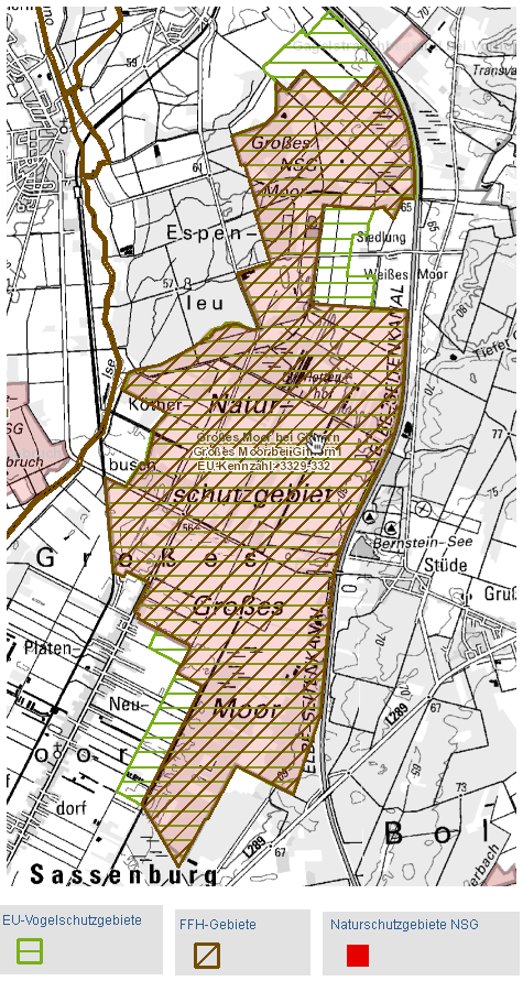 Zur Umsetzung der europarechtlichen Vorschriften für die Schaffung des europäischen ökologischen Netzes NATURA 2000 wurde das Gebiet als FFH-Gebiet (Nr. 315, Großes Moor bei Gifhorn) und als Vogelschutzgebiet (Großes Moor bei Gifhorn, V45) gemeldet.