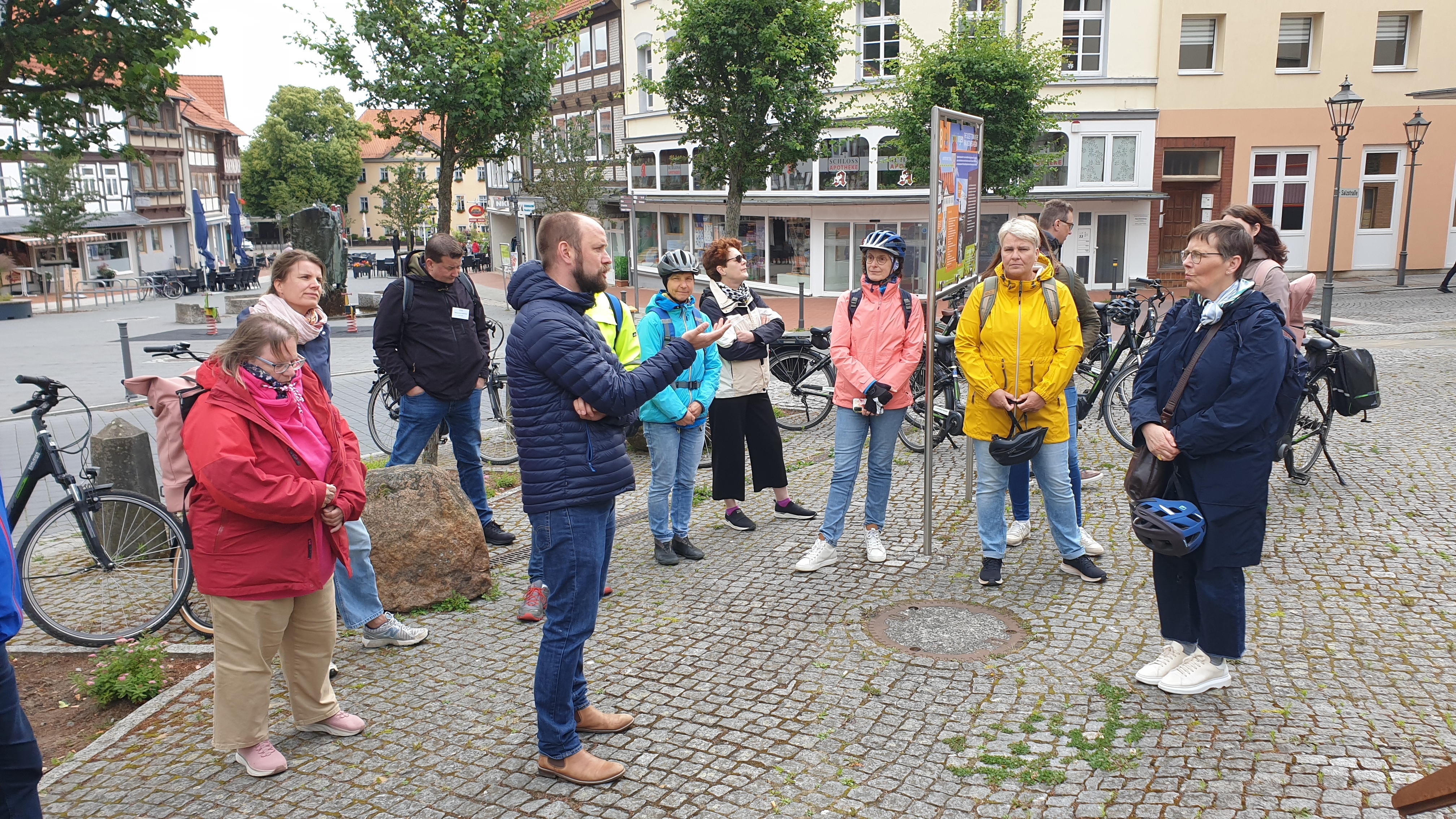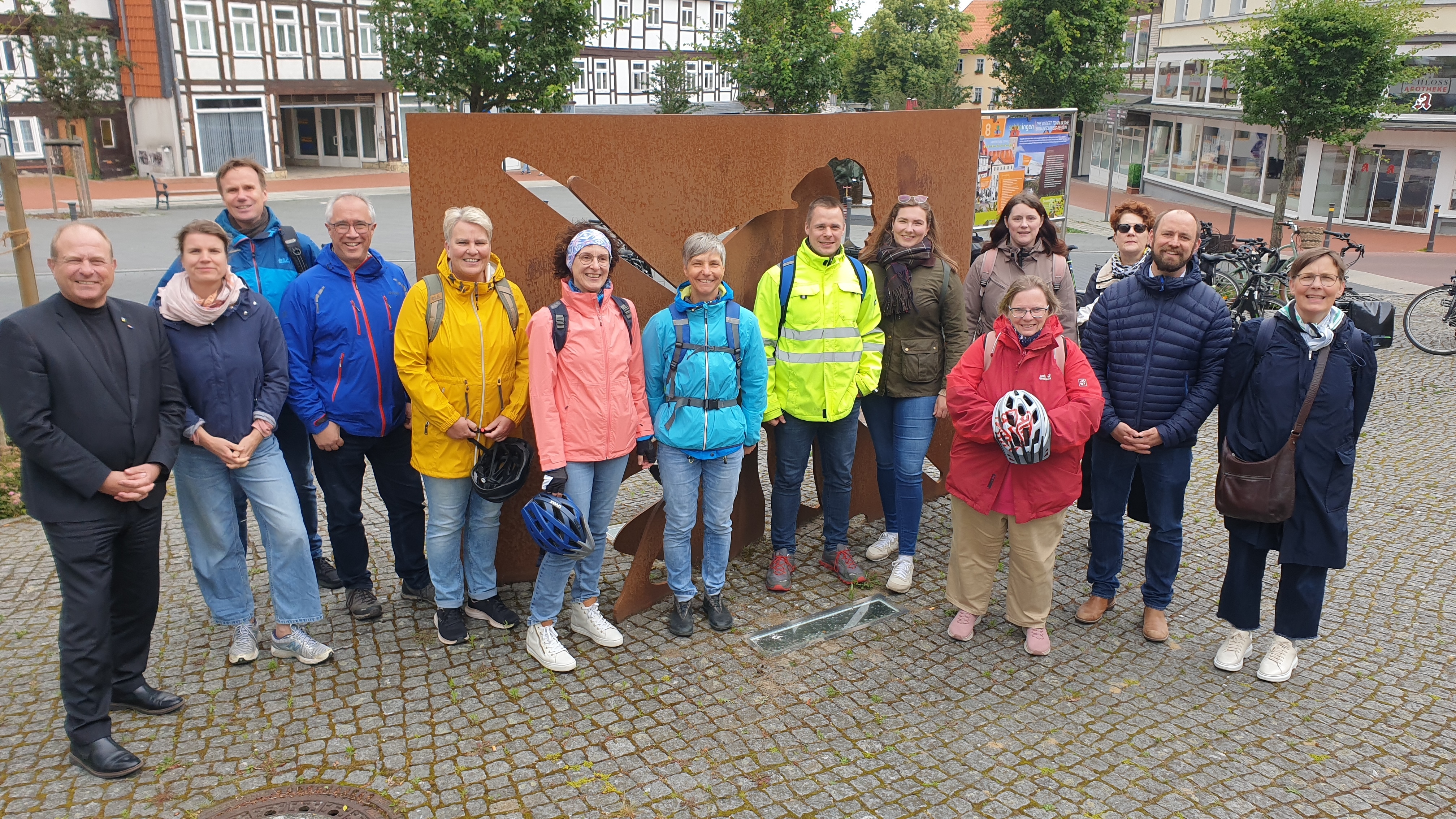 Sportlich wurde es in Schöningen: Mit den Fahrrädern vom Radverleih „Omas Drahtesel“ radelte die Landesbeauftragte gemeinsam mit Bürgermeister Malte Schneider, Vertretern des Landkreises Helmstedt und Mitarbeitenden rund um Schöningen. Das Unternehmen vermietet den E-Bike-Pool des Landkreises Helmstedt, der über LEADER-Fördermittel zustande kam.