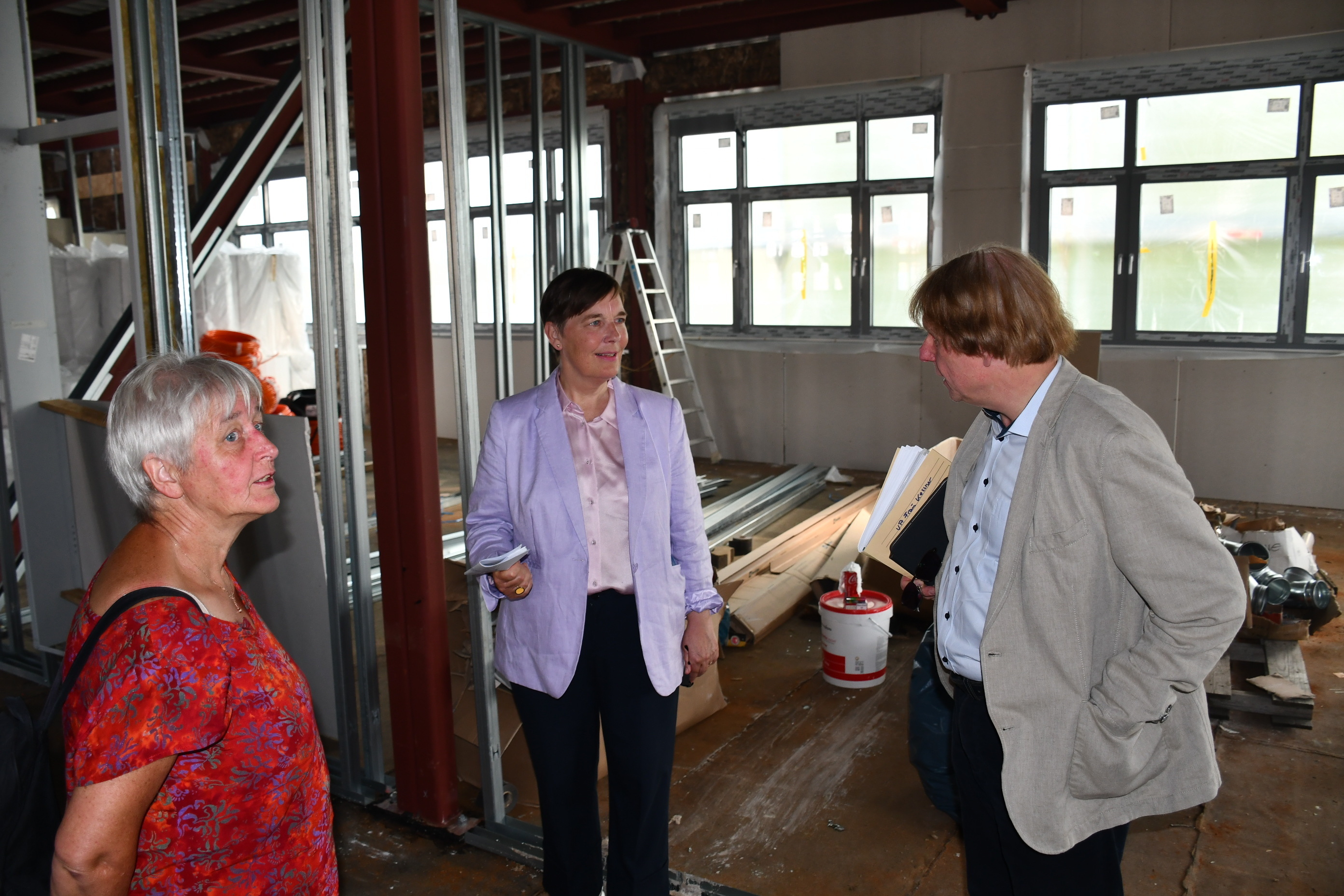 Beim Besuch der neuen Grundschule Nord zeigte der Sozialdezernent der Stadt Salzgitter, Dr. Dirk Härdrich, wie weit die Baumaßnahmen der Schule bereits vorangeschritten sind. Acht Monate nach dem ersten Spatenstich ist zwar noch nicht alles fertig, aber in der Schule in Salzgitter-Lebenstedt wird seit dem Start des Schuljahres 2024/25 bereits unterrichtet. Das Land fördert den Neubau der Schule mit 5,95 Millionen Euro über den Integrationsfonds.